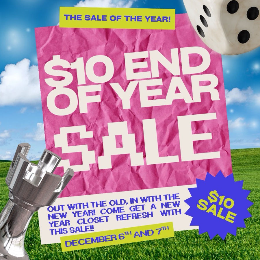 We’re clearing our racks out of old inventory to bring in all the new stuff for 2026!! Select full priced items will be $10 + many more items coming exclusively to this sale!! Come refresh your wardrobe for the new year with vintage 💫