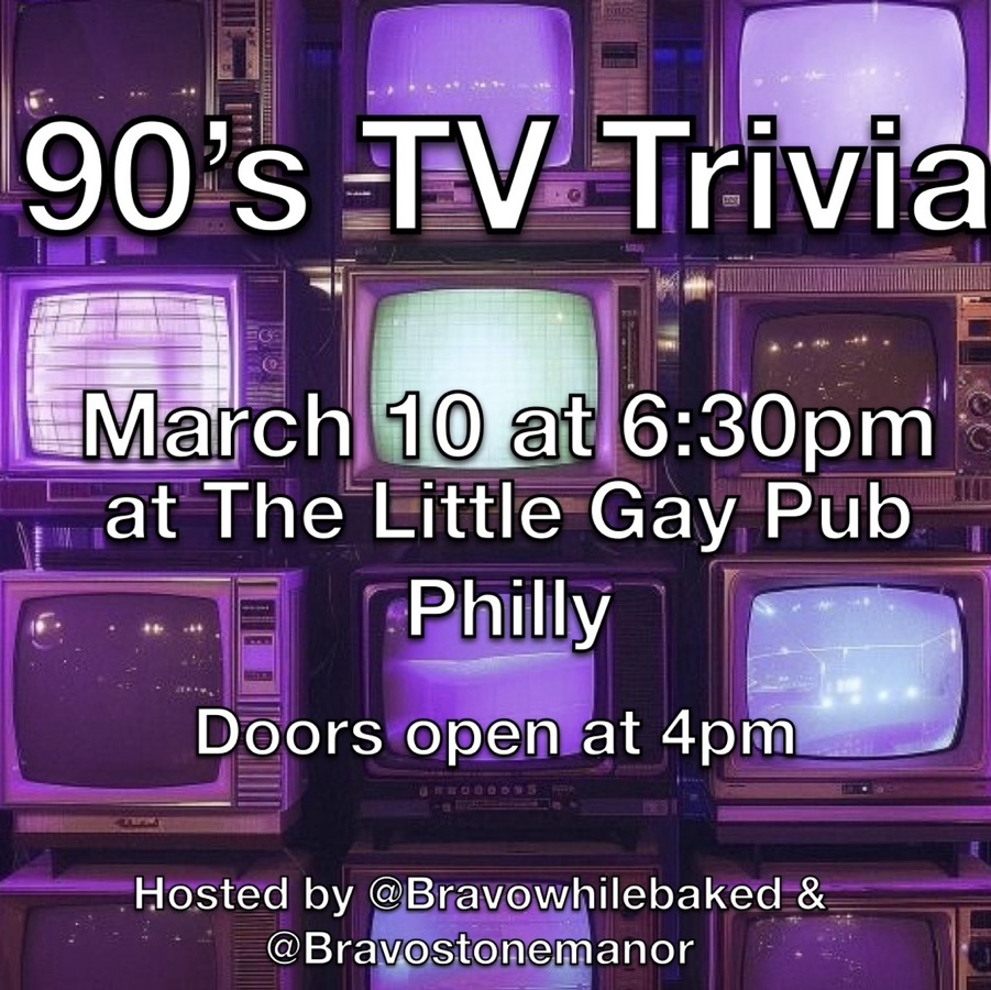 Join us on March 10th at 6:30pm for 90s Tv Trivia at the Little Gay Pub Philly! Doors open at 4pm!