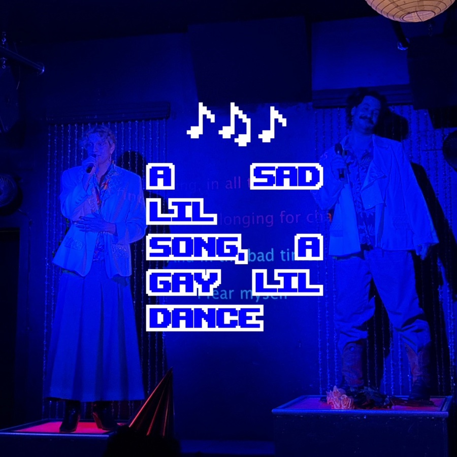 a sad lil song, a gay lil dance is a karaoke cabaret that gives glimpses of a love story through rantings and rememberings of drunken nights almost forgotten, tender duets belted with abandon, and joyous (gay) group dancing. it's a party, it's a one night stand, it's a drinking game. singing along is optional, but strongly encouraged, sentimentality and nostalgia may be unavoidable.