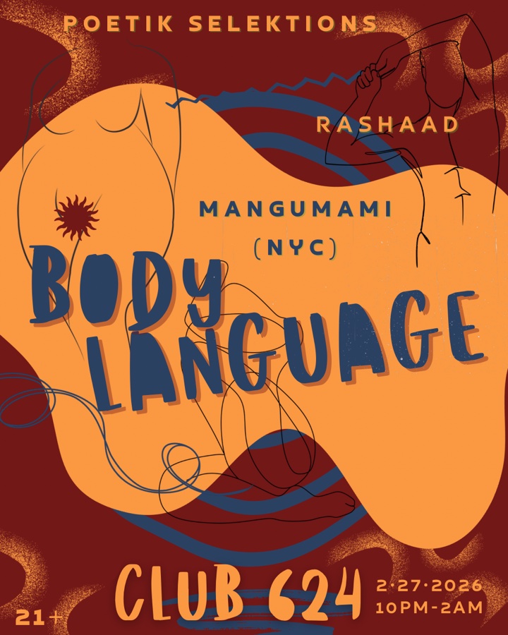 BODY LANGUAGE TICKETS ARE $5 till 2/22 ๐๏ธ ๐๐พ๐บ๐พ When words arenโt enough, let the music speak. Sounds by @poetik.selektions @rashaad_the_infinite and NYCโs very own @djmangumami taking you on a global journey through afrobeat, dancehall, baile funk, dembow, bounce, house, and club sounds that make you MOVE. Friday 2.27 | 10PM-2AM | Club 624 21+