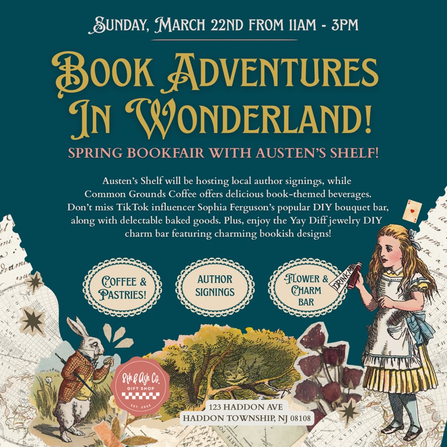 Join us on Sunday, March 22nd from 11am-3pm for our 4th Book-fair with Austen’s Shelf (non-ticketed event)! A Sunday Funday filled with must-have books, local author signings, mobile coffee shop, DIY stations hosted by TikTok influencer Sophia Ferguson bouquet bar & Yay Diff Jewelry’s charm bar! But don’t forget, our indoor market of 38+ local makers from NJ, PA & NY!