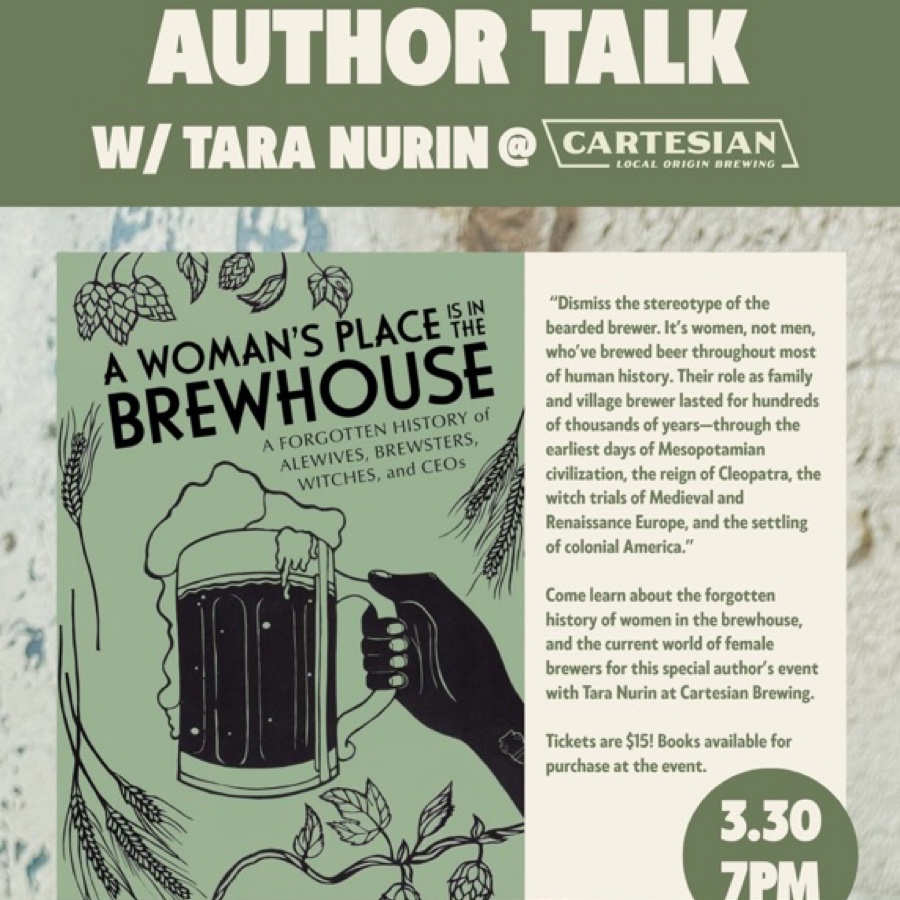 "Dismiss the stereotype of the bearded brewer. It's women, not men, who've brewed beer throughout most of human history. Their role as family and village brewer lasted for hundreds of thousands of years-through the earliest days of Mesopotamian civilization, the reign of Cleopatra, the witch trials of Medieval and Renaissance Europe, and the settling of colonial America." Come learn about the forgotten history of women in the brewhouse, and the current world of female brewers for this special author's event with Tara Nurin at Cartesian Brewing. Tickets are $15! Books available for purchase at the event.