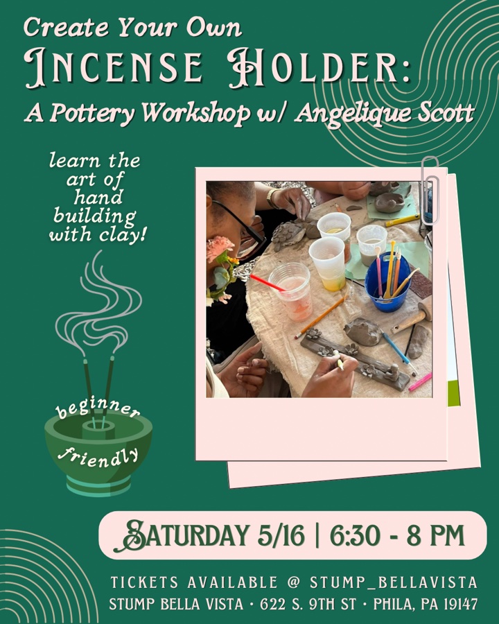 ✨ Pottery Workshop Alert! ✨ Join us on Saturday, May 16th from 6:30–8pm for a pottery workshop with Angelique Scott at STUMP Bella Vista. We’re so excited to welcome Angelique back for another evening of clay and creativity! 🤍 In this hands-on, beginner-friendly class, you’ll learn simple handbuilding techniques and design your own custom incense holder. Go minimal, textured, or a little more playful. You’ll leave with a piece that feels personal and made by you 🪔 What’s included: 🗣️ Step-by-step guidance from Angelique ⭐️ All clay and materials provided 🔥 Your finished custom incense holder to take home with you 🌿 A relaxed, creative evening in the shop 💖 Optional: BYO Favorite drink, stencils, shirt/smock or stamps/textured items No experience needed. Come solo or bring a friend and settle in for a fun night of creating with clay amongst the plants!🪴 Grab your 🎟️ now and we’ll see you there!