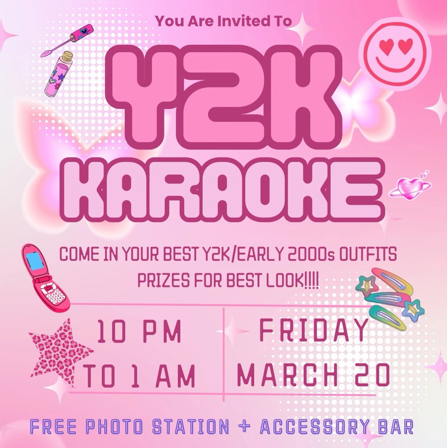COME THROW IT BACK TO THE 2000s WITH US AT FAIRMOUNT TAVERN! ARRIVE IN YOUR BEST Y2K OUTFIT AND SING YOUR HEART OUT!! THERE WILL BE A FREE GLAM ACCESSORY BAR AND A PHOTO STATION TO MAKE MEMORIES FOREVER💘