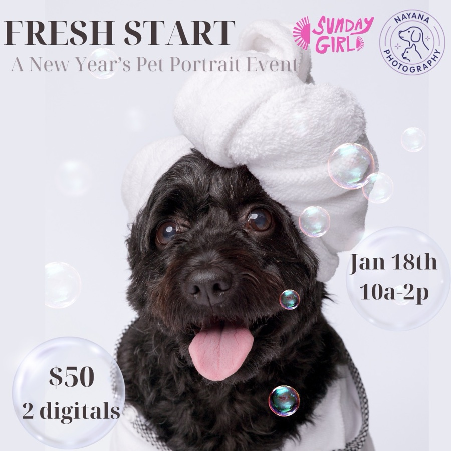 Nayana returns for a New Year’s pry portrait event. Choose from 2 digital prints for the $50 session. Must reserve a slot in advance, walk-ins not guaranteed.