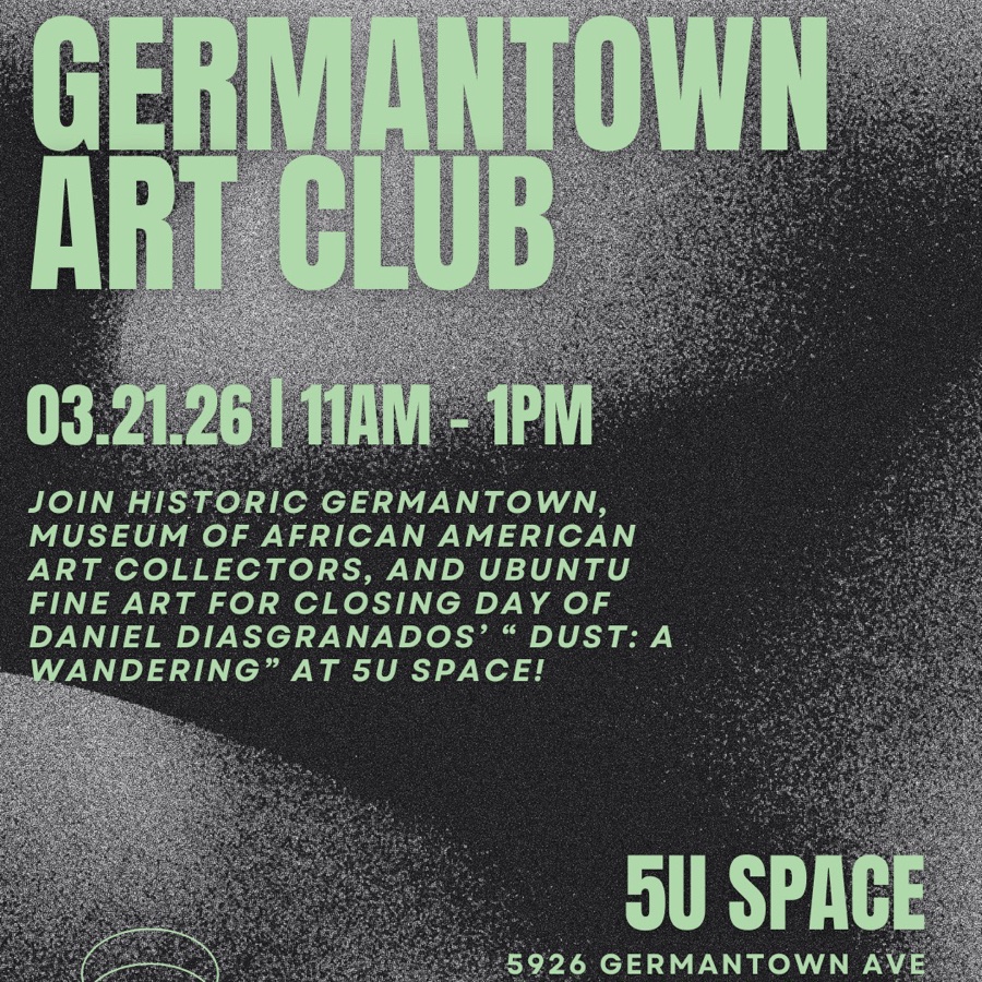 After an awesome launch last month, Historic Germantown, Museum of African American Art Collectors and Ubuntu Fine Art return with a meetup at Germantown gallery TIMESPACE, currently curated by 5U Space! Join Germantown Art Club as we explore Daniel Diasgranados’ photography show “ Dust: A Wandering” on its final day. Drawing from ongoing projects begun during the COVID-19 pandemic, seven photographs confront a moment in US history defined by rupture and disorientation. Central to the work is an ongoing inquiry: how does a place change over time, and how does memory shape our continued relationship to it? See you soon!