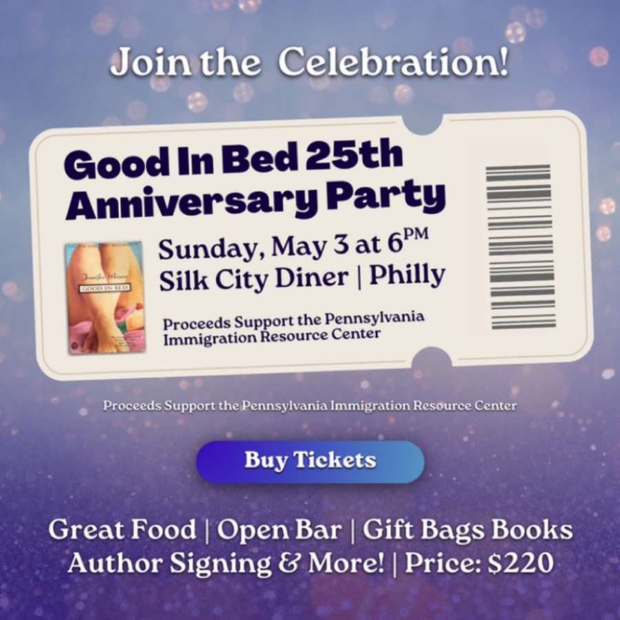 Good in Bed is turning 25 this year and to celebrate we're throwing an anniversary party! Get dressed up for a special night out and join me in Philly for an evening of fun, good company, great food and drinks (including the chance to try my favorite chocolate banana bread pudding!), and exciting gift bags filled with books, treats, and more. I will be enjoying the food, mingling with everyone, and of course signing books! Your ticket includes: - An early sneak peek of Jen’s next book! -Appetizers, small bites, and dessert - An open bar - Access to professional event photography - A book signing with Jen - Special video presentation - Signed copy of Good in Bed - Signed copy of The Griffin Sister's Greatest Hits - Gift bag of treats and products to try from sponsors