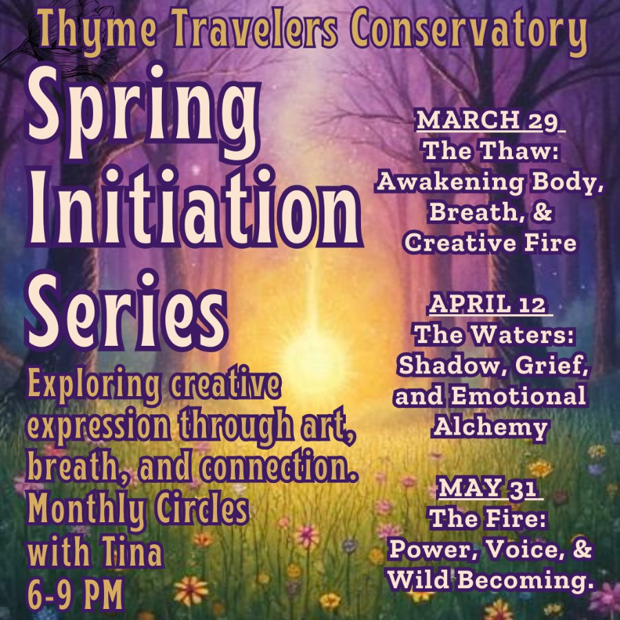 Join us for our Spring Initiation Series! Come to one or all! This series includes three 3-hour ceremonial circles aligned with the rising energy of spring — guiding women through emergence, emotional alchemy, and embodied becoming. Each circle stands alone. Together, they form a seasonal initiation through the body, the earth, and the creative spirit. ⸻ 🔥 MAY — The Fire: Power, Voice & Wild Becoming Theme: Embodiment • Identity • Voice • Desire • Self-Trust May arrives like a spark. This is a rite of becoming — a ceremonial return to your voice, your power, and your untamed knowing. Through embodied movement, expressive painting, sound, and fire ritual, we will explore what it means to inhabit your body fully, speak your truth without apology, and claim the woman rising within you. We will paint the wild self. Name the becoming. Crown the emerging identity. This is not transformation. This is initiation. About Your Facilitator: Tina's soul work lives at the crossroads of somatics, ritual, earth wisdom, and intentional creativity. She creates ceremonial spaces for women to soften their nervous systems, awaken their bodies, express their emotional landscapes, and remember their innate power. Through movement, breath, expressive painting, and sacred ritual, she guides women through cycles of release, integration, and rebirth — restoring trust in the body as oracle, creativity as prayer, and presence as the doorway home. Her spaces are not workshops, but initiations — thresholds of remembering, reclamation, and becoming.