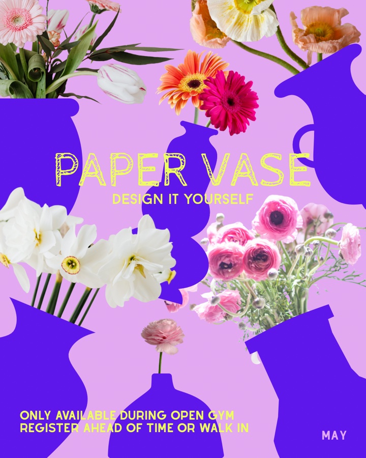 Design It Yourself (DIY): PAPER VASE The shapes and patterns of ancient vases helped inform a vase’s function. We’ve done the research so you can design your own trio of paper vases. All DIY project kits include a guide, materials, tools and coaching during your OPEN GYM visit. // $10, purchase ahead or at walk-in, FREE with membership