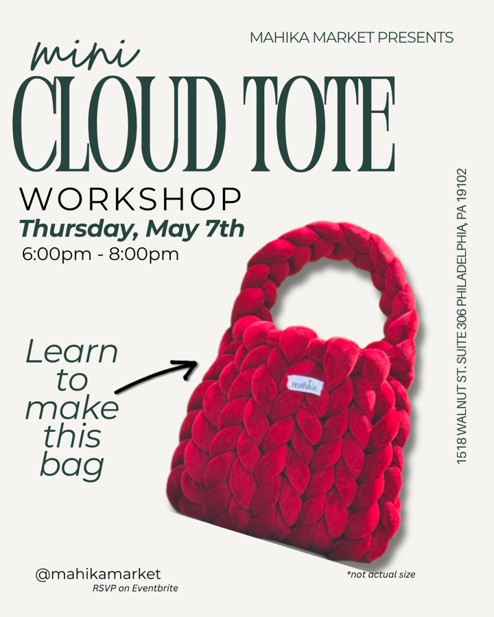 Join our Mini Cloud Tote Bag Making Workshop and learn how to create your very own stylish bag from scratch! Pick from an array of colored yarn and leave with a finished product that was made completely by YOU! This is an in-person event where you’ll get hands-on guidance, all the materials you need, and a fun, relaxed vibe. Perfect for all skill levels. We will be finger-knitting, so no knitting needle or crochet hook needed! Light refreshments will be provided (tea, mocktails, and snacks). Limited spots are available. We can’t wait to see you there!