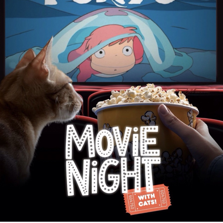 April 30th is our next movie night! Cuddle up with our adoptable kittens and snack on popcorn will watching Ponyo! When Sosuke, a young boy who lives on a clifftop overlooking the sea, rescues a stranded goldfish named Ponyo, he discovers more than he bargained for. Ponyo is a curious, energetic young creature who yearns to be human, but even as she causes chaos around the house, her father, a powerful sorcerer, schemes to return Ponyo to the sea. Tickets available now 🫧🐱🐟