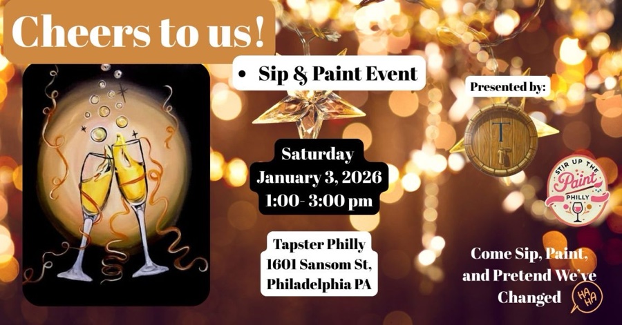 Ring in the New Year with creativity, good vibes, and a little liquid inspiration! Join us for our New Year Sip & Paint—the perfect way to kick off a fresh start, set the tone for 2026, and toast to new beginnings with a brush in hand. Whether you’re manifesting a glow-up, letting go of last year, or just here for the drinks, this class is all about celebrating YOU. Our instructor will guide you step-by-step through a festive New Year–themed painting, no experience needed. Expect laughs, great energy, and a masterpiece you’ll be proud to hang as a reminder of your “new year, new vibe” era. Come sip, paint, and start the year exactly how you want—colorful, creative, and a little bit sparkly. 🥂✨ Our hosts at Tapster offer a Self-Serve Tapster bar, a newer concept in the Philly area where you can sample a variety of beverages, and then self-pour your favorites after sampling. You can find out more about Tapster at: https://www.tapstertastingroom.com/ NOTE: This event is 21+ CLASS BEGINS ON TIME, PLEASE ARRIVE EARLY FOR PREFERRED SEATING THERE IS A 15 MINUTE GRACE PERIOD, AFTER THE GRACE PERIOD ENDS IT IS UP TO THE MASTER ARTISTS’ DISCRETION TO ALLOW YOU TO JOIN REFUNDS ARE ONLY ISSUED TO CANCELATIONS MADE WITHIN 24 HOURS OF CLASS TIME. Reach out to Stirupthepaintphl@gmail.com for further questions