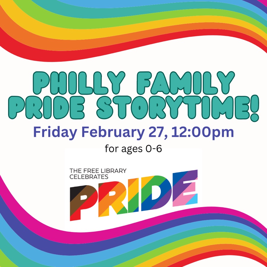 Join Philly Family Pride for a National Day of Reading in Coordination with the Human Rights Commission at noon this Friday, 2/27 🌈 We’ll be reading the book “Marley’s Pride” along with other stories, and singing, dancing, and expressing ourselves! Children 0-6 and caregivers/older siblings are welcome. This event takes place on the library’s 3rd floor, accessible by stairs or elevator.