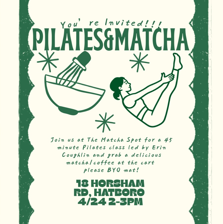 A 45 minute Pilates class at The Matcha Spot on their outdoor deck overlooking the creek! Grab a latte or matcha before or after class. Link to RSVP is below! $5 Venmo to Erin-Coughlin5 to complete RSVP :)