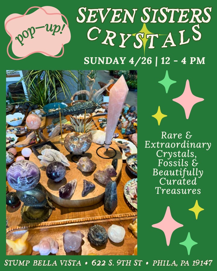 ✨Calling all crystal lovers ✨ Stop by on Sunday 4/26 from 12-4pm for a mystical, magical pop-up with Seven Sisters Crystals! Explore an incredible selection of unique crystals, fossils, and thoughtfully curated treasures. Mary, the heart behind Seven Sisters Crystals, is a Wayne-based collector whose passion, knowledge and care shine through in every piece she brings. 💫 Come shop over 90 varieties of stunning, ethically & locally sourced crystals and multi-million-year-old fossils in a warm, welcoming vibe ~ perfect for browsing, learning and find that piece that feels just right. This is such a lovely way to spend your Sunday afternoon amongst the plants🪴 Come on thorough!