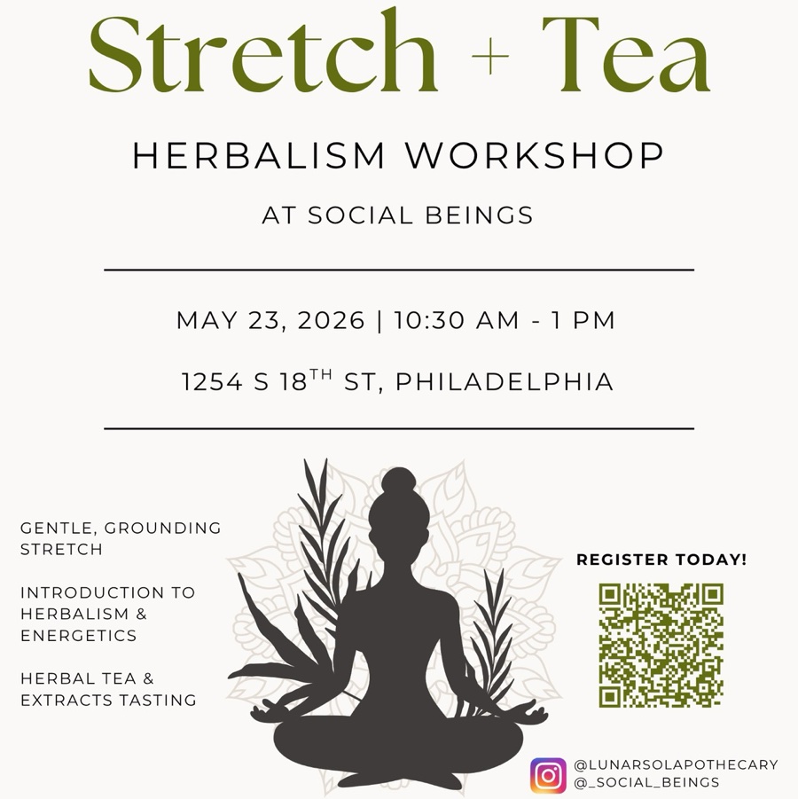This class begins with a gentle, grounding stretch to help you slow down, release tension, and reconnect with your body. From there, we’ll transition into an introduction to herbalism and energetics—exploring how different herbs can support balance and overall well-being. You’ll learn the basics in an approachable, easy-to-understand way, with a focus on how to start incorporating herbs into your daily life. We’ll close with a tea and tincture tasting, giving you the chance to experience the herbs firsthand. A calm, nourishing experience that blends movement, learning, and a little ritual.