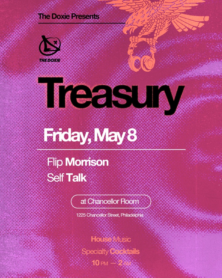 The Doxie Presents: Treasury A long-form back-to-back with Flip Morrison and Self Talk. A lifetime musician: Flip leans into groove, swing, and low-end pressure; whereas Self Talk pulls toward deep-cut progressive, trance, and stripped-back dub textures.The organic blend of their music is the key to the unique sound of Treasury. The format of the night stays open: extended blends, four shared decks, and a focus on pacing the room and building off each-other rather than rotating through tracks. There's less emphasis on individual selection, focusing more on how things sit together over time. Expect slow builds, moments of tension, and stretches where the line between the two disappears completely. No rush, no drops, no big resets. Just a room being shaped over a few hours. Presented by The Doxie, with Flip at the helm.. bringing his label’s sensibility into a setting that favors patience over payoff. Free Entry